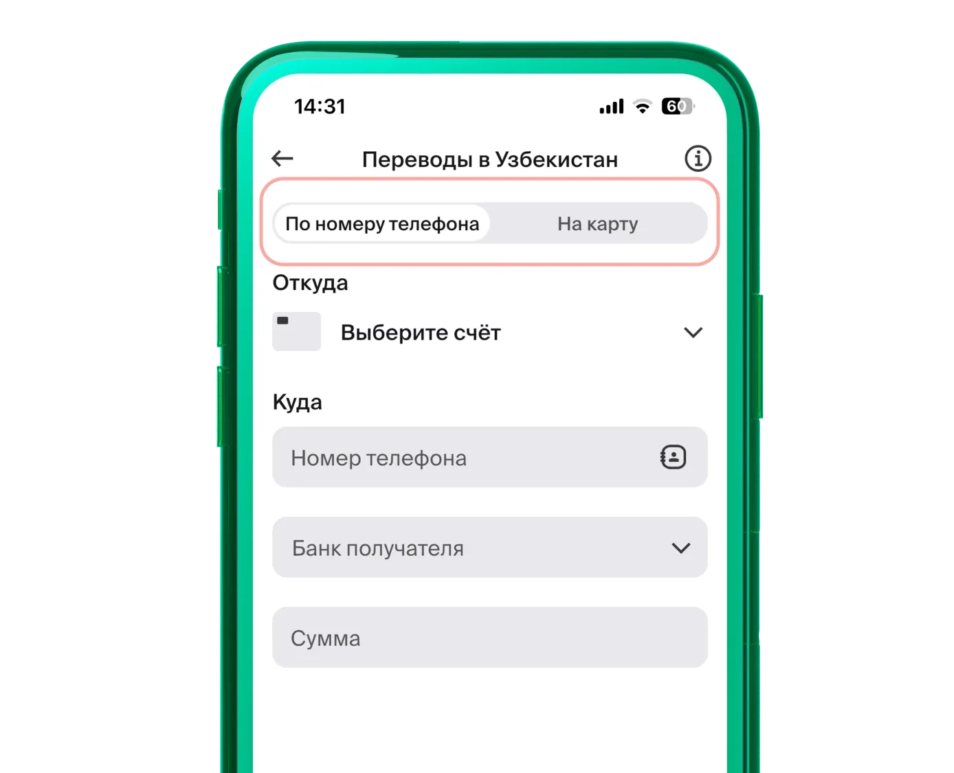 It is enough to have the recipient’s phone number or card number.