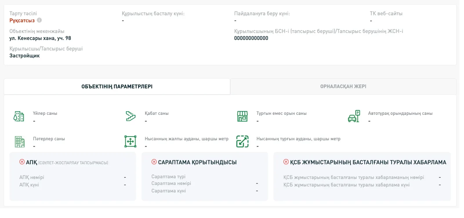 Алматыдағы рұқсаты жоқ жобаның мысалы.