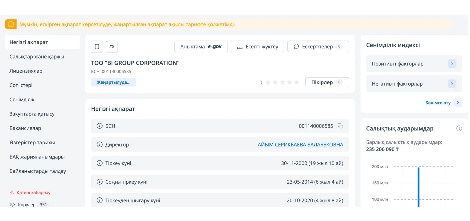 BI Group компаниясының тіркеу мәліметтері туралы деректер
