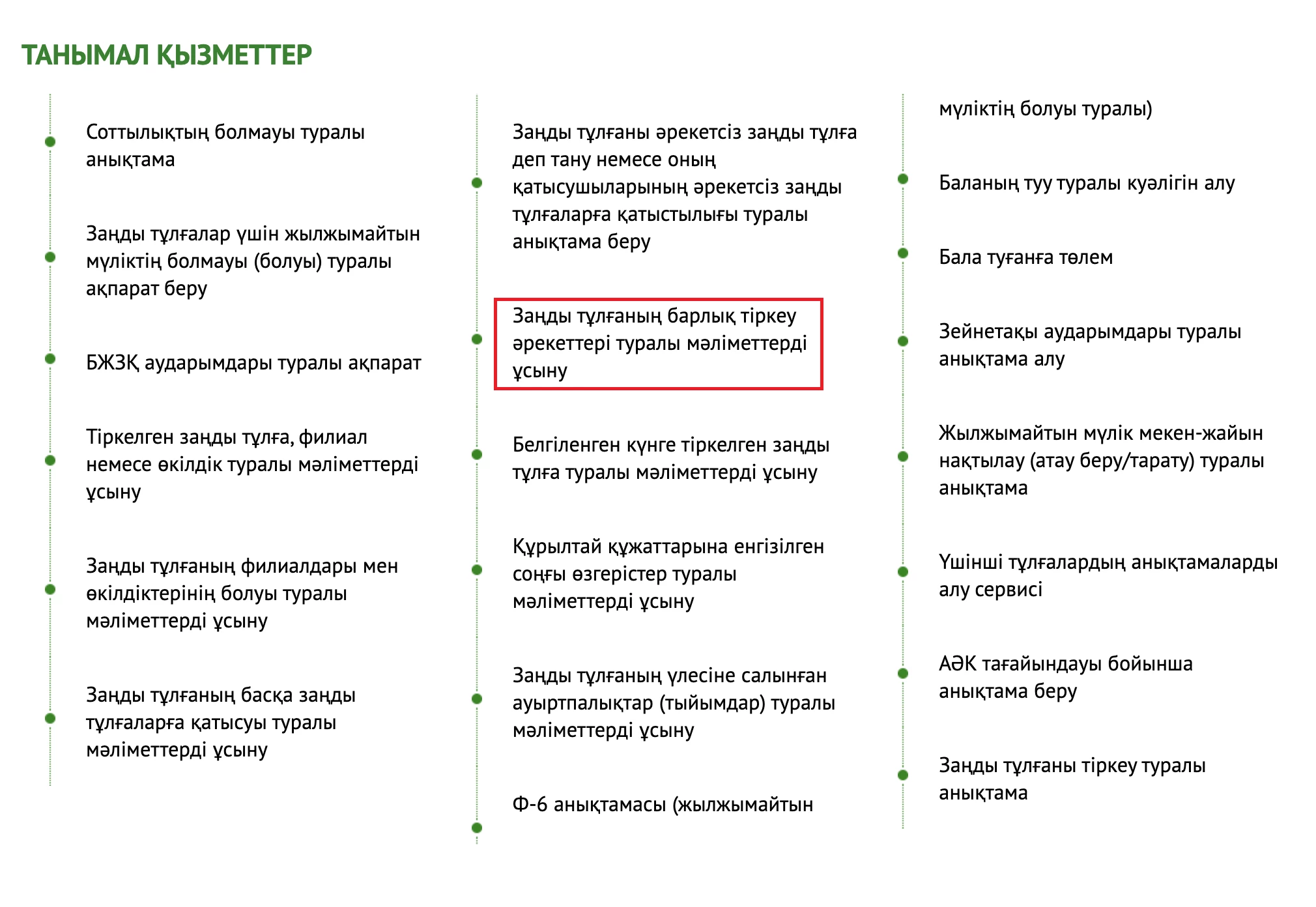 Сервис мемлекеттік деректер базаларынан келесі мәліметтерді жинайды: