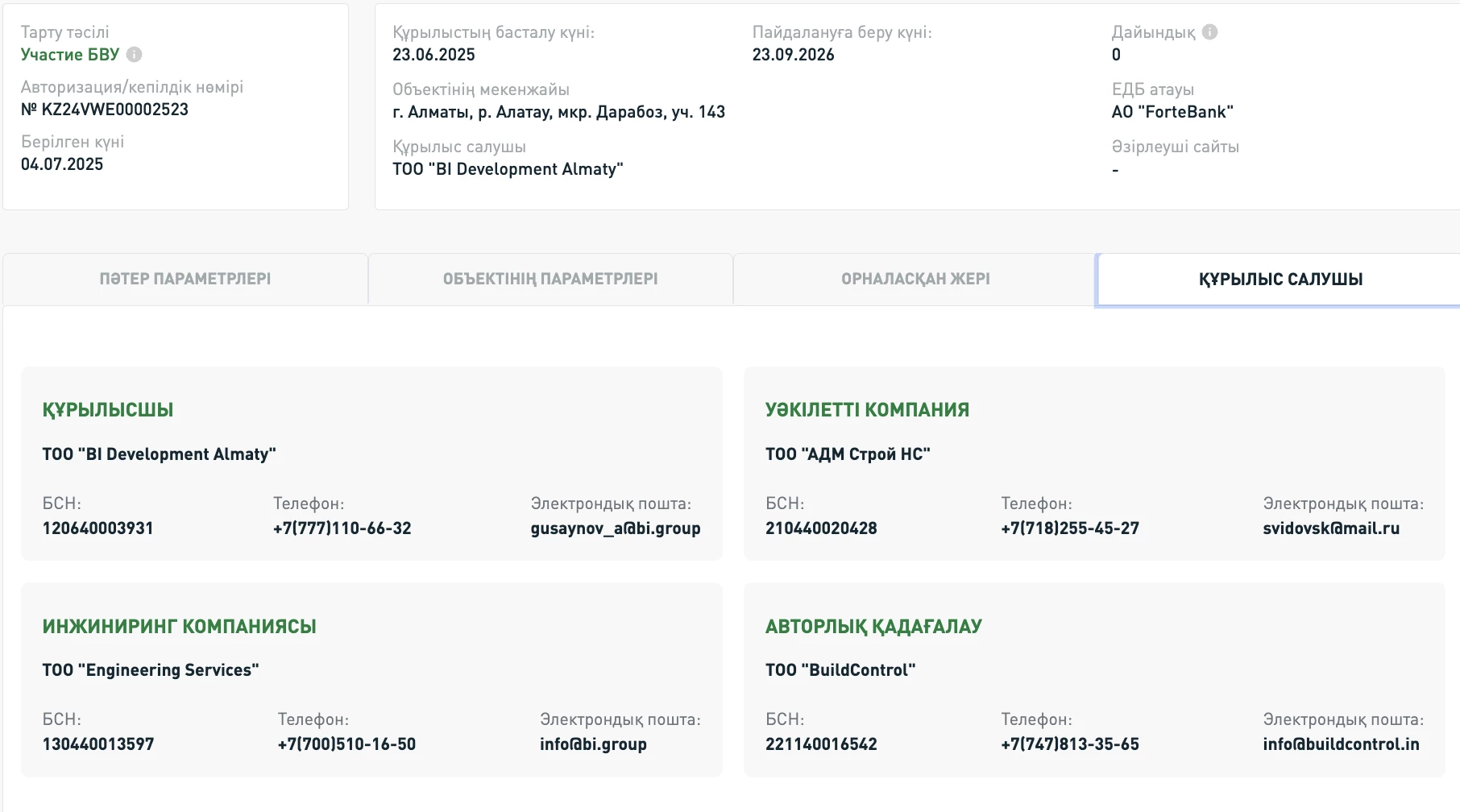 BI Development Almaty объектісінің мысалында үлескерлердің ақшасын тартуға рұқсаттың болуы осылай көрінеді.