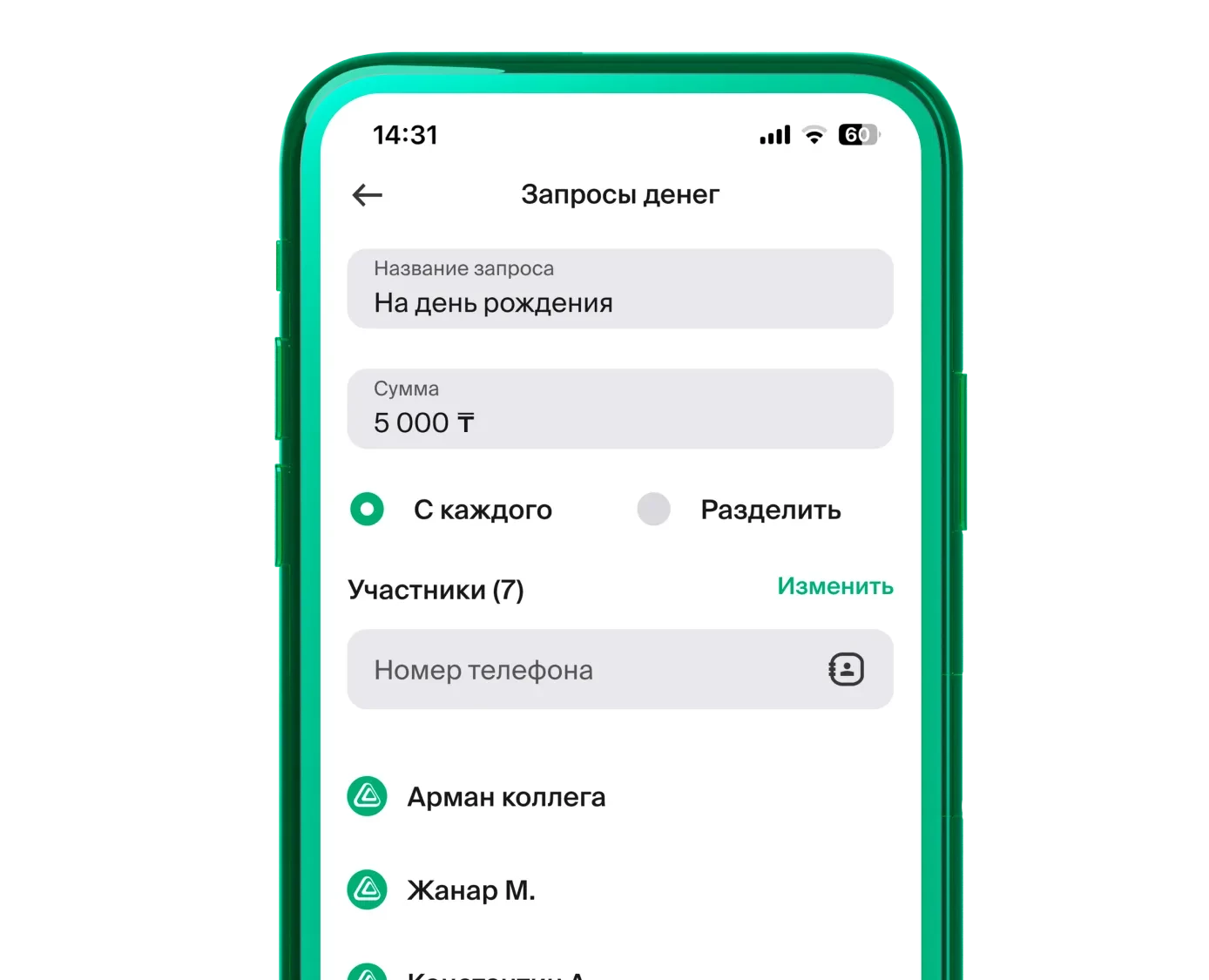 Создавайте сборы всего за минуту, отправив запрос денег другим участникам