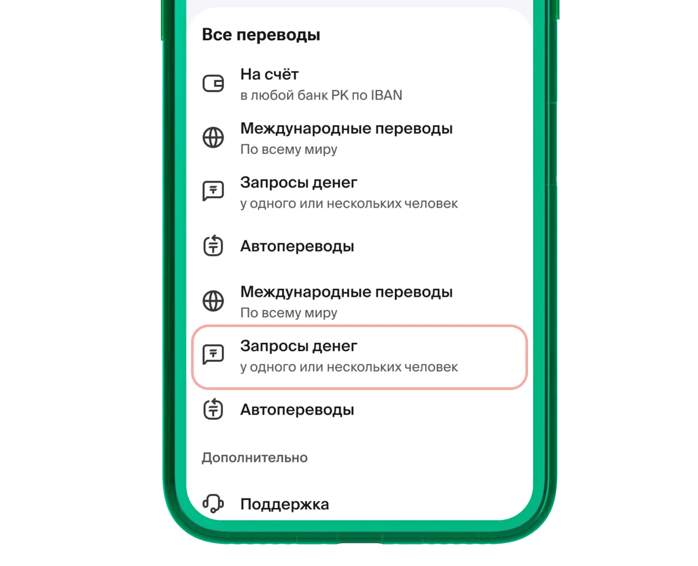 Выберите «Запросы денег»