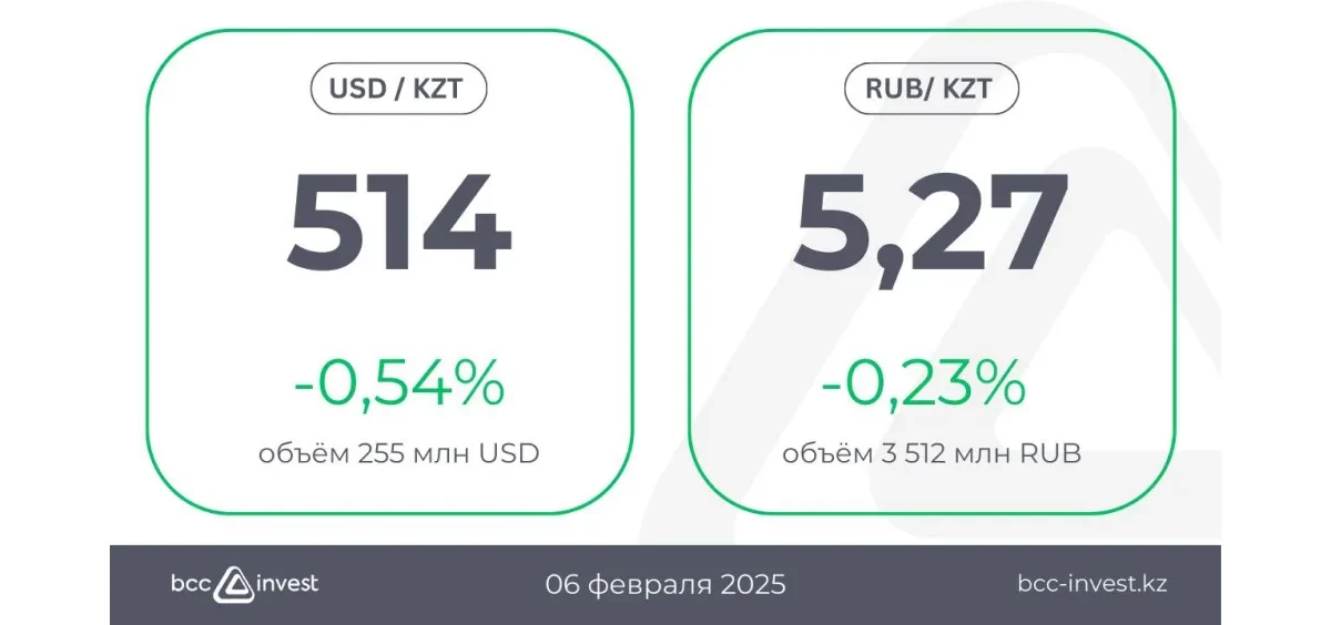 Курс тенге к доллару продолжил укрепление третий день подряд, снизившись ещё на 0,54% до уровня 514. Объём торгов составил 255 млн USD.