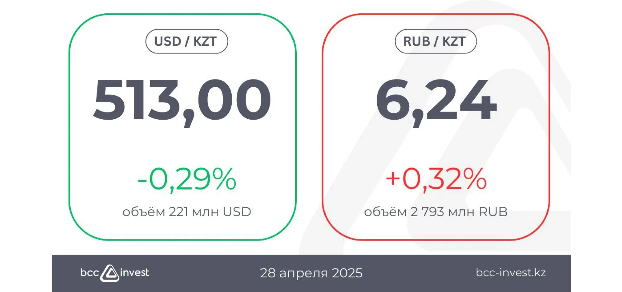 Тенге начал неделю с укрепления, снизившись до 513,00 (0,29%) за день. Объём торгов составил 221 млн USD. В моменте курс укреплялся до 512,06.