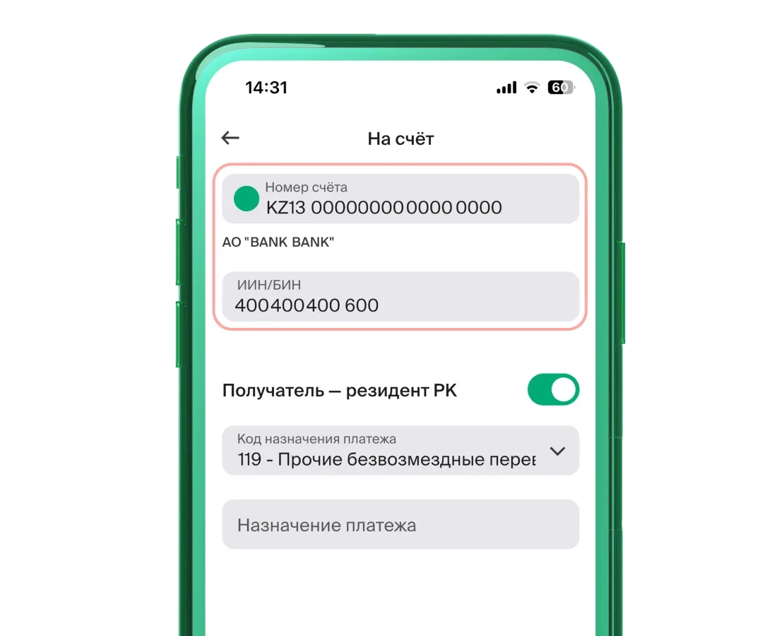 Всё, что нужно для перевода — номер IBAN и ИИН/БИН