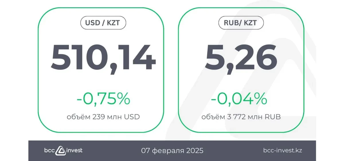 Курс тенге продолжает укрепляться четвёртый день подряд, снизившись на 0,75% до уровня 510,14. Объём торгов составил 239 млн USD.