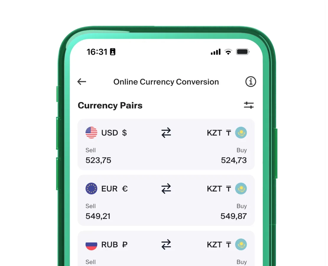 [{"currencyPairId":14,"currencySell":"USD","currencyBuy":"KZT","currencyMain":"USD","currencyMinor":"KZT","currencyName":"\u0410\u049a\u0428 \u0434\u043e\u043b\u043b\u0430\u0440\u044b","pictureUrlMain":"api\/v1\/fx\/images\/flags\/usd.png","pictureUrlMinor":"api\/v1\/fx\/images\/flags\/kzt.png","sell":492.04,"buy":493.66,"lastUpdateDateTime":"06.02.2026 05:37:43","currencyMainName":"USD","currencyMinorName":"KZT","stopTomLossSell":556.06,"stopTomLossBuy":429.57,"stopSpotLossSell":556.12,"stopSpotLossBuy":429.66,"maxAmount":1000000,"minAmount":1,"ricRound":2,"amountRound":2,"functionalType":"ON_THR","currencyMainSymbol":"$","currencyMinorSymbol":"\u20b8","sellNet":492.24,"buyNet":493.46,"orderQtyRound":2,"quoteOriginalNetRound":2,"isAvailable24x5":null,"isAvailableUntil":null,"availableUntilTime":null},{"currencyPairId":15,"currencySell":"EUR","currencyBuy":"KZT","currencyMain":"EUR","currencyMinor":"KZT","currencyName":"\u0415\u0443\u0440\u043e","pictureUrlMain":"api\/v1\/fx\/images\/flags\/eur.png","pictureUrlMinor":"api\/v1\/fx\/images\/flags\/kzt.png","sell":578.51,"buy":582.04,"lastUpdateDateTime":"06.02.2026 05:37:43","currencyMainName":"EUR","currencyMinorName":"KZT","stopTomLossSell":653.83,"stopTomLossBuy":506.46,"stopSpotLossSell":653.94,"stopSpotLossBuy":506.55,"maxAmount":900000,"minAmount":1,"ricRound":2,"amountRound":2,"functionalType":"ON_THR","currencyMainSymbol":"\u20ac","currencyMinorSymbol":"\u20b8","sellNet":578.66,"buyNet":581.89,"orderQtyRound":2,"quoteOriginalNetRound":2,"isAvailable24x5":null,"isAvailableUntil":null,"availableUntilTime":null},{"currencyPairId":16,"currencySell":"RUB","currencyBuy":"KZT","currencyMain":"RUB","currencyMinor":"KZT","currencyName":"\u0420\u0443\u0431\u043b\u044c","pictureUrlMain":"api\/v1\/fx\/images\/flags\/rub.png","pictureUrlMinor":"api\/v1\/fx\/images\/flags\/kzt.png","sell":6.3773,"buy":6.475,"lastUpdateDateTime":"06.02.2026 05:37:43","currencyMainName":"RUB","currencyMinorName":"KZT","stopTomLossSell":7.2052,"stopTomLossBuy":5.6341,"stopSpotLossSell":7.2041,"stopSpotLossBuy":5.635,"maxAmount":80000000,"minAmount":1,"ricRound":4,"amountRound":2,"functionalType":"ON_THR","currencyMainSymbol":"\u20bd","currencyMinorSymbol":"\u20b8","sellNet":6.3973,"buyNet":6.45,"orderQtyRound":2,"quoteOriginalNetRound":4,"isAvailable24x5":null,"isAvailableUntil":null,"availableUntilTime":null},{"currencyPairId":17,"currencySell":"GBP","currencyBuy":"KZT","currencyMain":"GBP","currencyMinor":"KZT","currencyName":"\u0424\u0443\u043d\u0442 \u0441\u0442\u0435\u0440\u043b\u0438\u043d\u0433\u0456","pictureUrlMain":"api\/v1\/fx\/images\/flags\/gbp.png","pictureUrlMinor":"api\/v1\/fx\/images\/flags\/kzt.png","sell":665.35,"buy":667.51,"lastUpdateDateTime":"06.02.2026 05:37:43","currencyMainName":"GBP","currencyMinorName":"KZT","stopTomLossSell":751.96,"stopTomLossBuy":580.82,"stopSpotLossSell":752.07,"stopSpotLossBuy":580.91,"maxAmount":700000,"minAmount":1,"ricRound":2,"amountRound":2,"functionalType":"ON_THR","currencyMainSymbol":"\u00a3","currencyMinorSymbol":"\u20b8","sellNet":665.5,"buyNet":667.36,"orderQtyRound":2,"quoteOriginalNetRound":2,"isAvailable24x5":null,"isAvailableUntil":null,"availableUntilTime":null},{"currencyPairId":18,"currencySell":"EUR","currencyBuy":"USD","currencyMain":"EUR","currencyMinor":"USD","currencyName":"\u0415\u0443\u0440\u043e","pictureUrlMain":"api\/v1\/fx\/images\/flags\/eur.png","pictureUrlMinor":"api\/v1\/fx\/images\/flags\/usd.png","sell":1.17672,"buy":1.17805,"lastUpdateDateTime":"06.02.2026 05:37:43","currencyMainName":"EUR","currencyMinorName":"USD","stopTomLossSell":null,"stopTomLossBuy":null,"stopSpotLossSell":null,"stopSpotLossBuy":null,"maxAmount":900000,"minAmount":1,"ricRound":5,"amountRound":2,"functionalType":"ON_THR","currencyMainSymbol":"\u20ac","currencyMinorSymbol":"$","sellNet":1.17722,"buyNet":1.17755,"orderQtyRound":2,"quoteOriginalNetRound":5,"isAvailable24x5":null,"isAvailableUntil":null,"availableUntilTime":null},{"currencyPairId":19,"currencySell":"USD","currencyBuy":"RUB","currencyMain":"USD","currencyMinor":"RUB","currencyName":"\u0410\u049a\u0428 \u0434\u043e\u043b\u043b\u0430\u0440\u044b","pictureUrlMain":"api\/v1\/fx\/images\/flags\/usd.png","pictureUrlMinor":"api\/v1\/fx\/images\/flags\/rub.png","sell":76.267,"buy":77.183,"lastUpdateDateTime":"06.02.2026 05:37:43","currencyMainName":"USD","currencyMinorName":"RUB","stopTomLossSell":null,"stopTomLossBuy":null,"stopSpotLossSell":null,"stopSpotLossBuy":null,"maxAmount":1000000,"minAmount":1,"ricRound":4,"amountRound":2,"functionalType":"ON_THR","currencyMainSymbol":"$","currencyMinorSymbol":"\u20bd","sellNet":76.467,"buyNet":76.983,"orderQtyRound":2,"quoteOriginalNetRound":4,"isAvailable24x5":null,"isAvailableUntil":null,"availableUntilTime":null},{"currencyPairId":20,"currencySell":"GBP","currencyBuy":"USD","currencyMain":"GBP","currencyMinor":"USD","currencyName":"\u0424\u0443\u043d\u0442 \u0441\u0442\u0435\u0440\u043b\u0438\u043d\u0433\u0456","pictureUrlMain":"api\/v1\/fx\/images\/flags\/gbp.png","pictureUrlMinor":"api\/v1\/fx\/images\/flags\/usd.png","sell":1.35148,"buy":1.35291,"lastUpdateDateTime":"06.02.2026 05:37:43","currencyMainName":"GBP","currencyMinorName":"USD","stopTomLossSell":null,"stopTomLossBuy":null,"stopSpotLossSell":null,"stopSpotLossBuy":null,"maxAmount":700000,"minAmount":1,"ricRound":5,"amountRound":2,"functionalType":"ON_THR","currencyMainSymbol":"\u00a3","currencyMinorSymbol":"$","sellNet":1.35198,"buyNet":1.35241,"orderQtyRound":2,"quoteOriginalNetRound":5,"isAvailable24x5":null,"isAvailableUntil":null,"availableUntilTime":null},{"currencyPairId":21,"currencySell":"XAU","currencyBuy":"KZT","currencyMain":"XAU","currencyMinor":"KZT","currencyName":"\u0410\u043b\u0442\u044b\u043d","pictureUrlMain":"api\/v1\/fx\/images\/flags\/xau.png","pictureUrlMinor":"api\/v1\/fx\/images\/flags\/kzt.png","sell":74598.04,"buy":75387.67,"lastUpdateDateTime":"06.02.2026 05:37:43","currencyMainName":"GOLD","currencyMinorName":"KZT","st