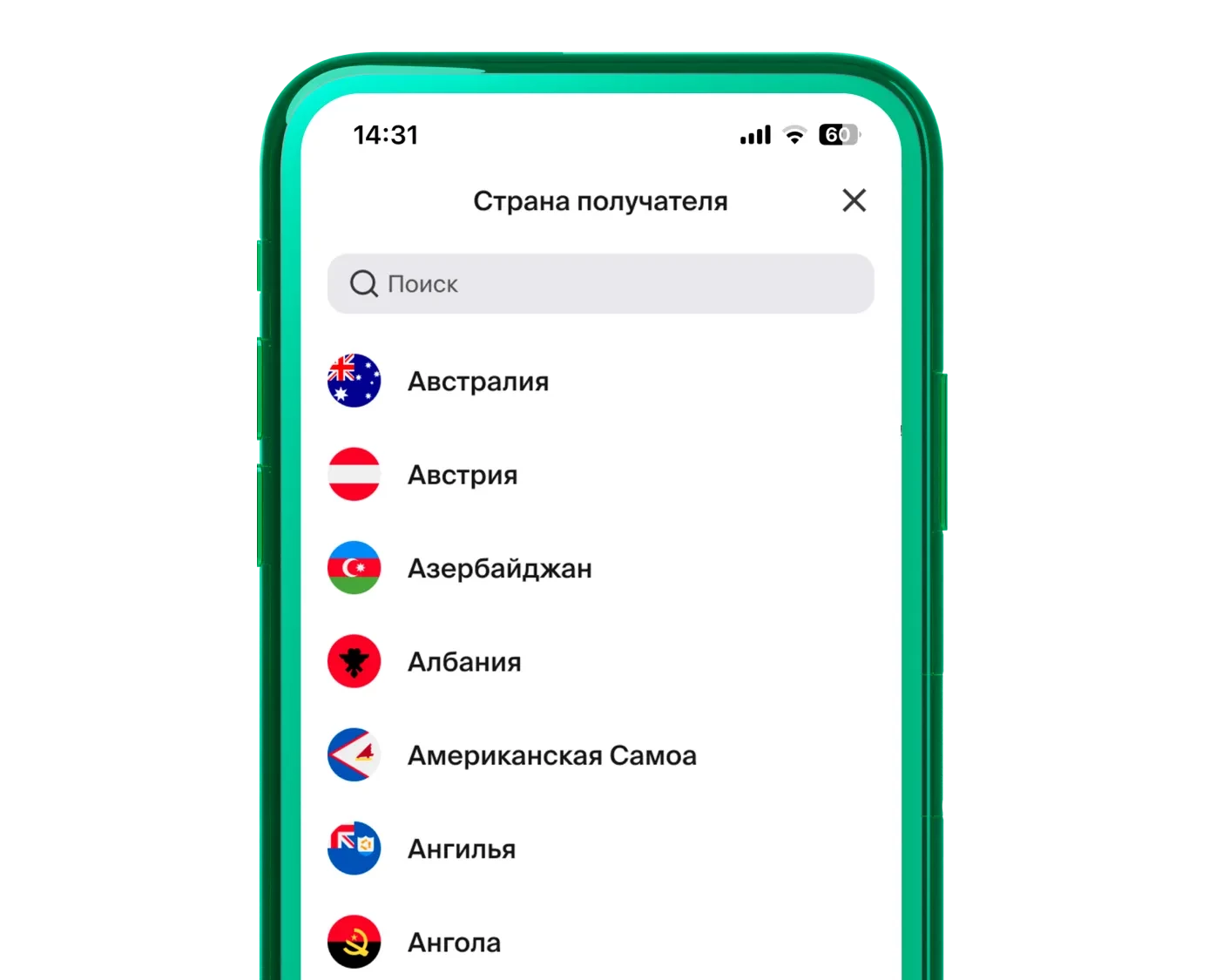 You can transfer money to more than 15 countries
