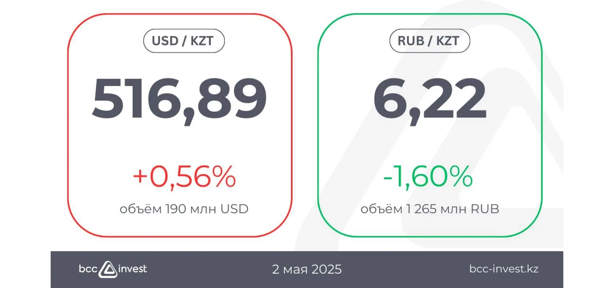 Теңге АҚШ долларына қатысты 516,89 деңгейіне дейін әлсіреді (+0,56%), күн ішінде 517,6 теңгеге дейін жетті. Мамыр айында ұлттық валютаның нығаюы тарихи түрде байқалатын үрдіс болса да, бүгін біз керісінше көрсеткішті тіркедік.
