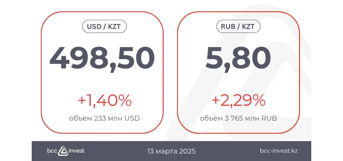 Теңге әлсіреп, бағам 498,50 деңгейіне көтерілді. Сауда көлемі орташа деңгейде сақталуда.