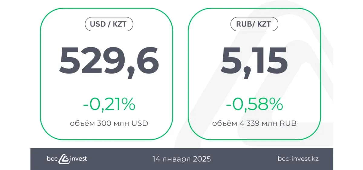 USD/KZT бағамы 529,6 теңгеге дейін төмендеді (-0,21%) сауда көлемі 300 млн USD құрады.