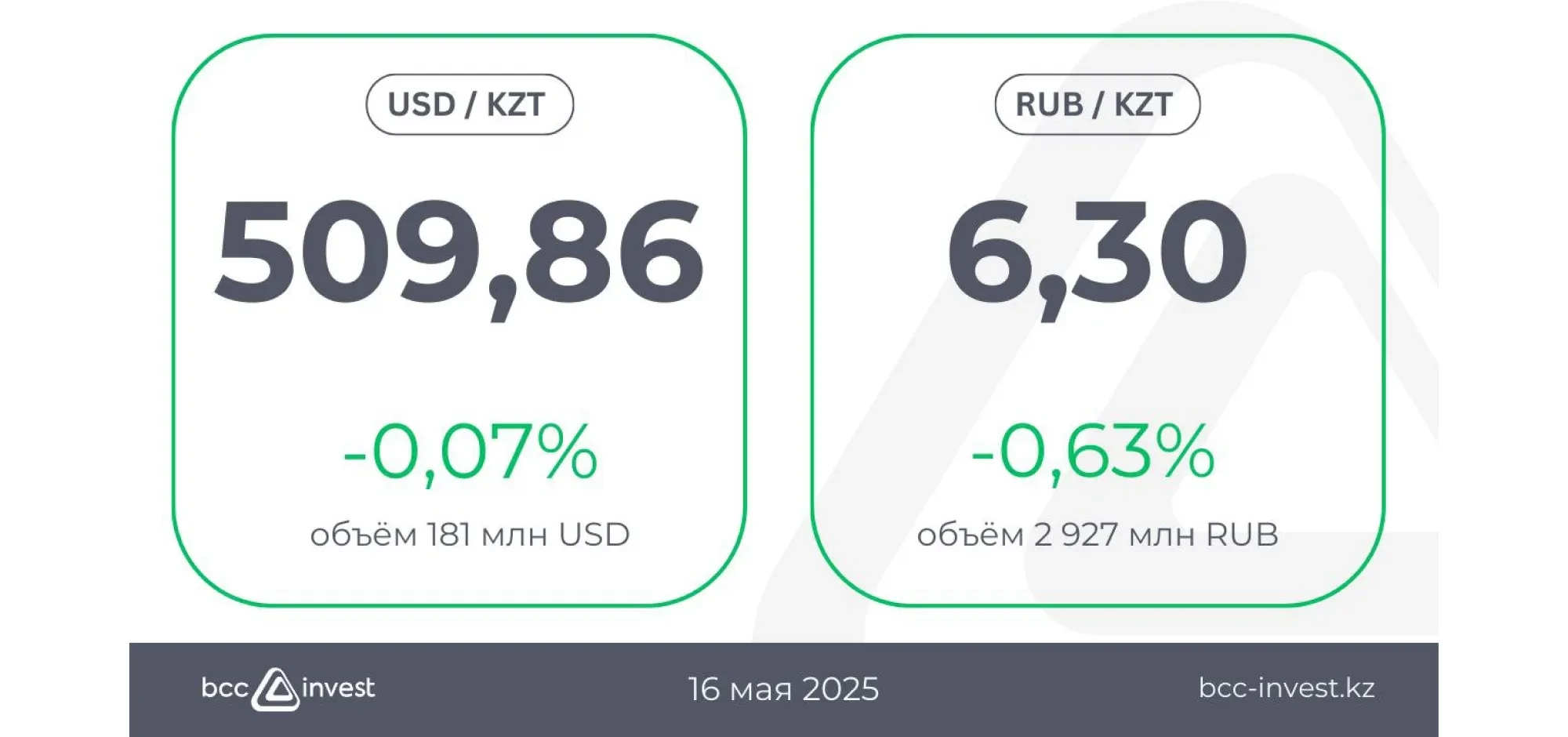 Рубль бағамы 6,30 теңгеге дейін төмендеп, 0,63%-ға әлсіреді. Сауда көлемі 2 927 млн рубльді құрады.