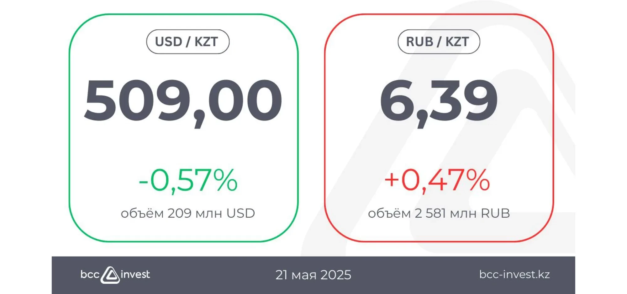 Теңге АҚШ долларына қатысты 0,57%-ға нығайып, күнді 1 доллар үшін 509,00 теңге деңгейінде аяқтады. Сауда көлемі 209 млн АҚШ долларын құрады.