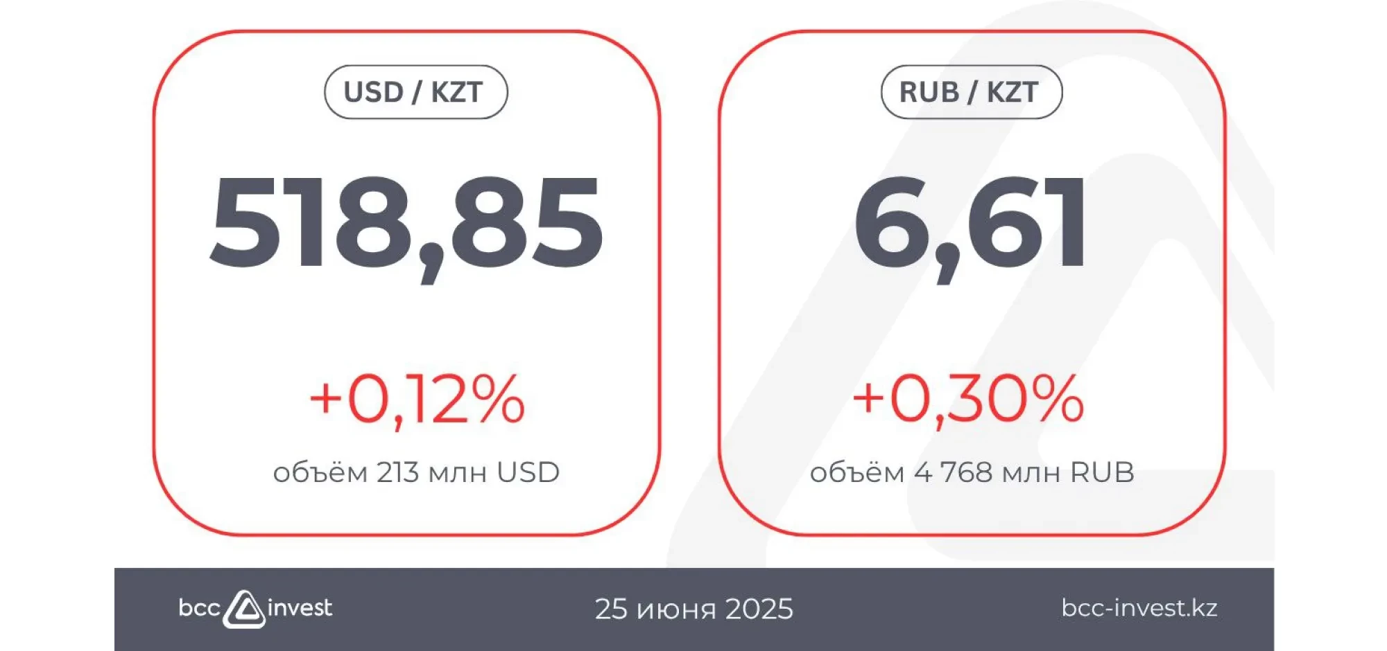 Кейінгі күндердегі нығаюдан кейін, бүгін теңге орташа әлсіреуді көрсетіп отыр: доллардың курсы 518,85 теңгеге (+0,12%) көтерілді, рубль 6,61 теңгеге (+0,30%) жетті.