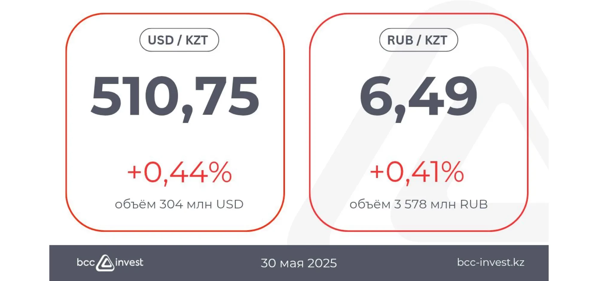 Теңге бағамы АҚШ долларына қатысты біршама әлсіреді, бағам 0,44%, бір доллар үшін 510,75 теңгеге дейін көтерілді. Сауда-саттық көлемі 304 миллион долларға өсті.