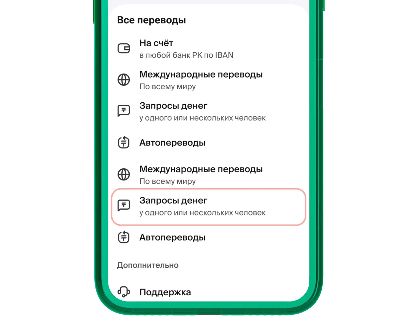 Выберите «Запросы денег»