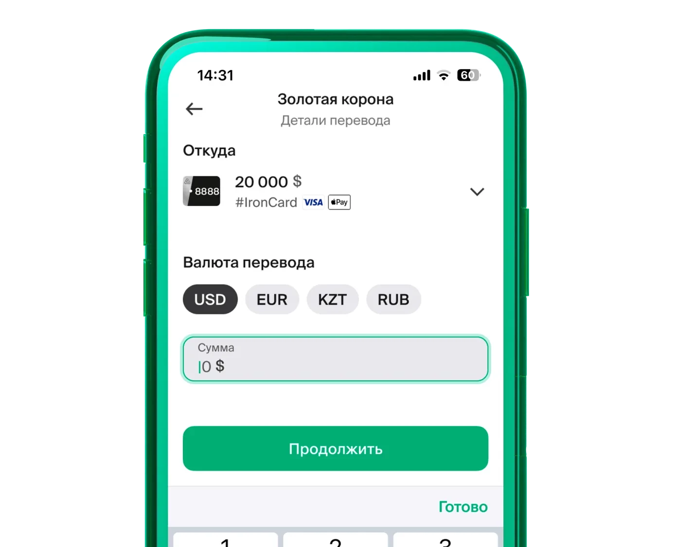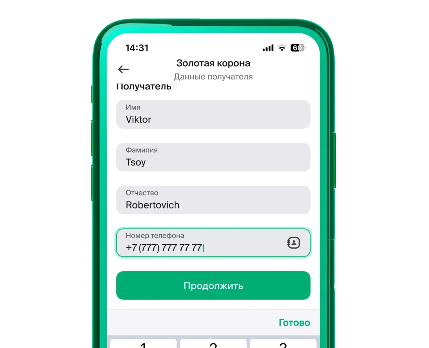 • Действует при условии конвертации валюты по курсу сервиса «Золотая Корона» на момент отправки перевода