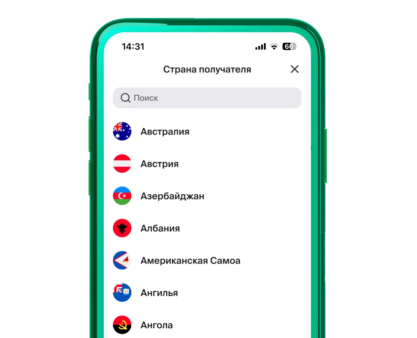 *Информацию о доступных валютах для каждой страны необходимо уточнять у оператора банка при оформлении перевода.